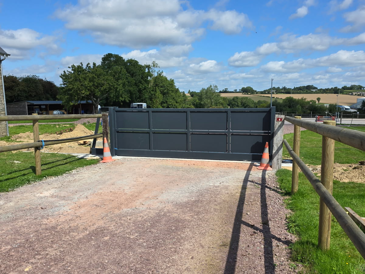 Nous avons réalisé la fabrication d’un portail coulissant motorisé pour une entreprise, avec un cahier des charges simple mais exigeant : permettre une largeur de passage suffisante pour les camions tout en assurant robustesse et facilité d’usage.