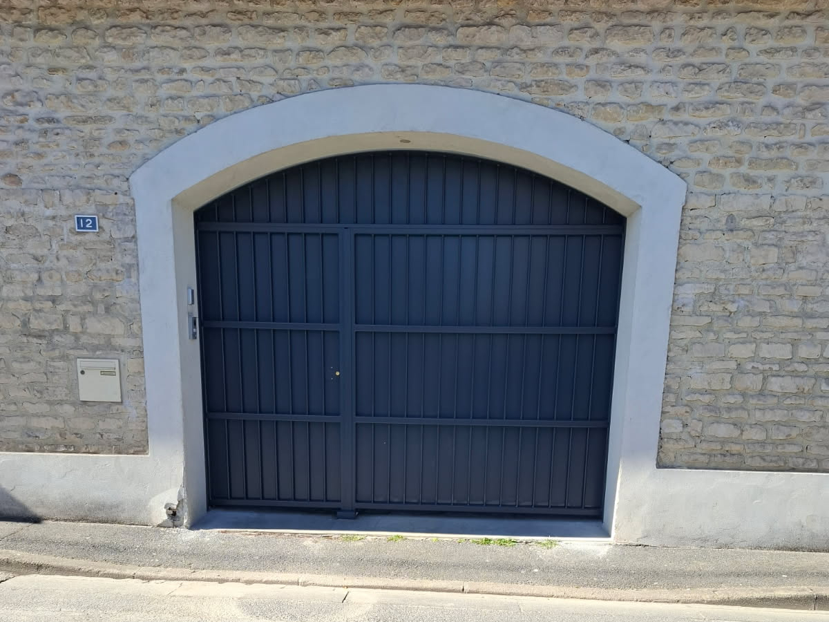 - Le tout a été fabriqué sur mesure : acier travaillé, finitions soignées, adaptation sur mesure aux charnières, au gabarit existant, aux alignements, etc.